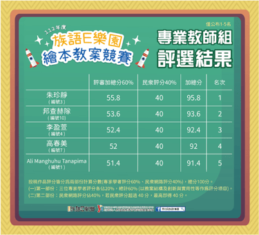 112 年|原住民族委員會|族語 E 樂園繪本教案競賽|得獎