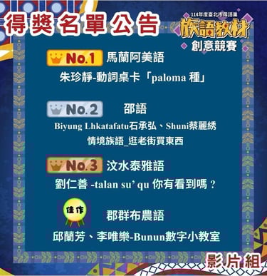 114 年|新北市母語巢|族語教材創意競賽|第 1 名